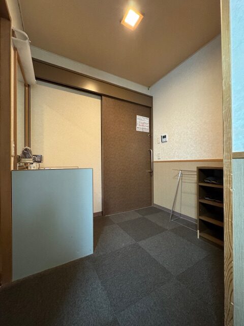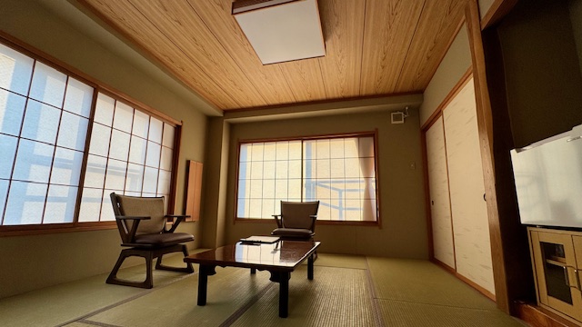 Dall’esterno il ryokan si presenta come un edificio in legno di 3 piani dall’aspetto semplice, con una piccola area laterale adibita a parcheggio per gli ospiti. Si tratta di una struttura a gestione familiare e i proprietari sono sempre stati molto gentili e disponibili a soddisfare tutte le nostre esigenze, in perfetto stile omotenashi. L’ingresso dell’edificio è ad ante scorrevoli ed immette nell’area reception, fiancheggiata da una piccola sala arredata con poltroncine basse e panneggi alle pareti. Da qui parte il corridoio che, superato uno disimpegno dove sono presenti yukata, asciugamani e altre utilità a disposizione degli ospiti, conduce all’ascensore per i piani superiori. Gli spazi sono ampi e privi di barriere architettoniche, per cui ci si muove agevolmente anche su ruote♿️. In fondo al corridoio del piano terra si trova una sala riservata dove (su richiesta) viene servita la colazione o la cena, e naturalmente si trova anche l’onsen. Ryokan Accessibile Giappone