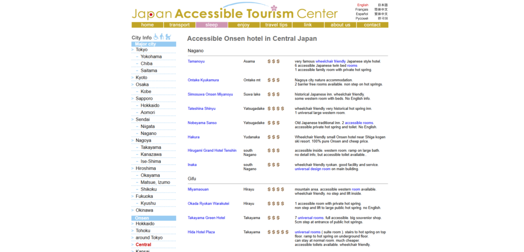 Un modo abbastanza agile per trovare un ryokan con onsen accessibile è quello di fare una ricerca sulla pagina web dedicata dell’ente del turismo accessibile giapponese, cliccando al seguente LINK