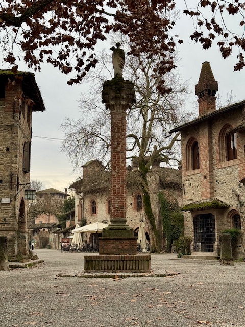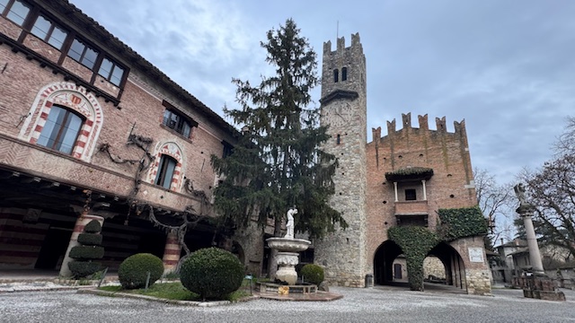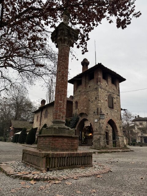 Il borgo si sviluppa attorno a un castello medievale autentico (1395), legato alla figura di Gian Galeazzo Visconti, primo duca di Milano. Purtroppo quando ho visitato il borgo, il castello era chiuso, per cui ho potuto solo scorgerlo dall’esterno. Il castello si presenta come una solida costruzione in stile medievale lombardo, con torri angolari e mura merlate. Il castello oggi è una residenza privata, ma comunque visitabile su prenotazione con guida